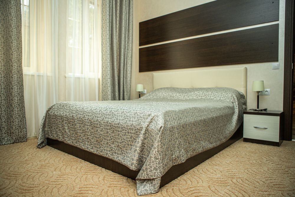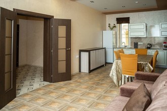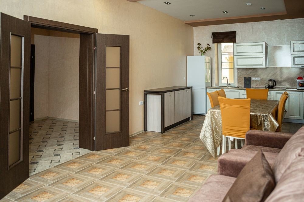 Если вы планируете остаться с ночевой, тогда вам подойдёт комфортабельный коттедж с хамамом. На первом этаже находится большая кухня, совмещенная с гостиной. Здесь есть вся необходимая мебель и бытовая техника: кухонный гарнитур, плита, стол, стулья, диван, холодильник, посуда для приготовления пищи, столовые приборы и телевизор. Также на первом уровне предусмотрен хамам, душ и сантехнический узел. На втором этаже располагаются три уютные спальни.